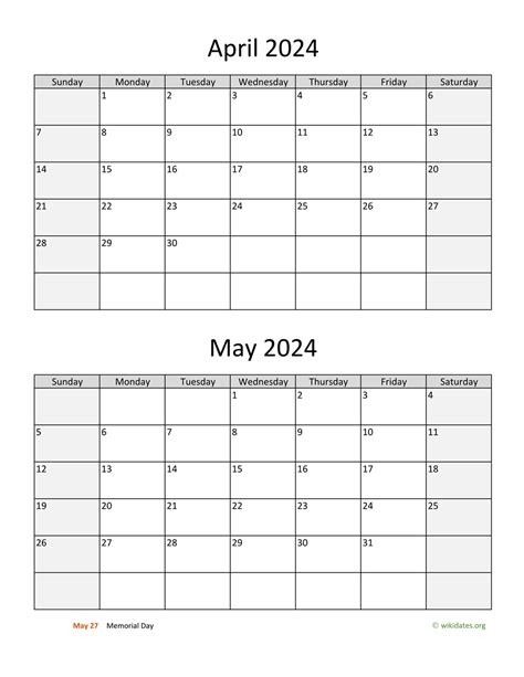 April To May 2024 Calendar Printable April 2024 Calendar Big Dates Photos