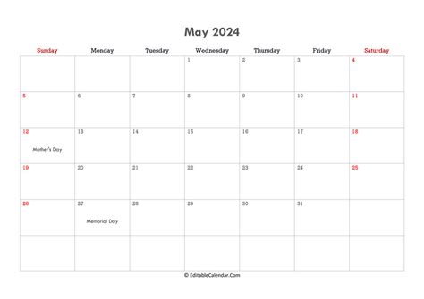Editable May 2024 Calendar